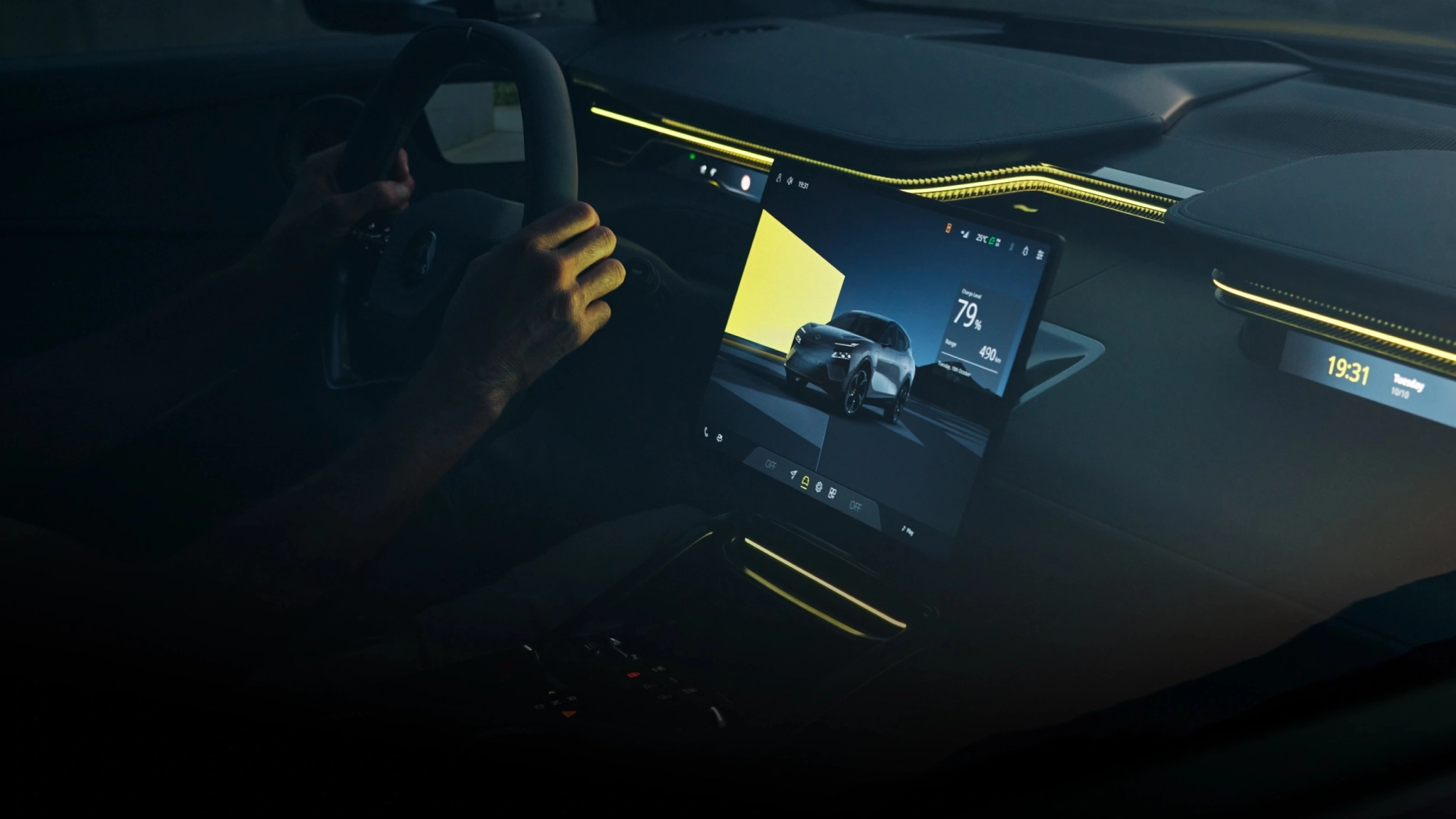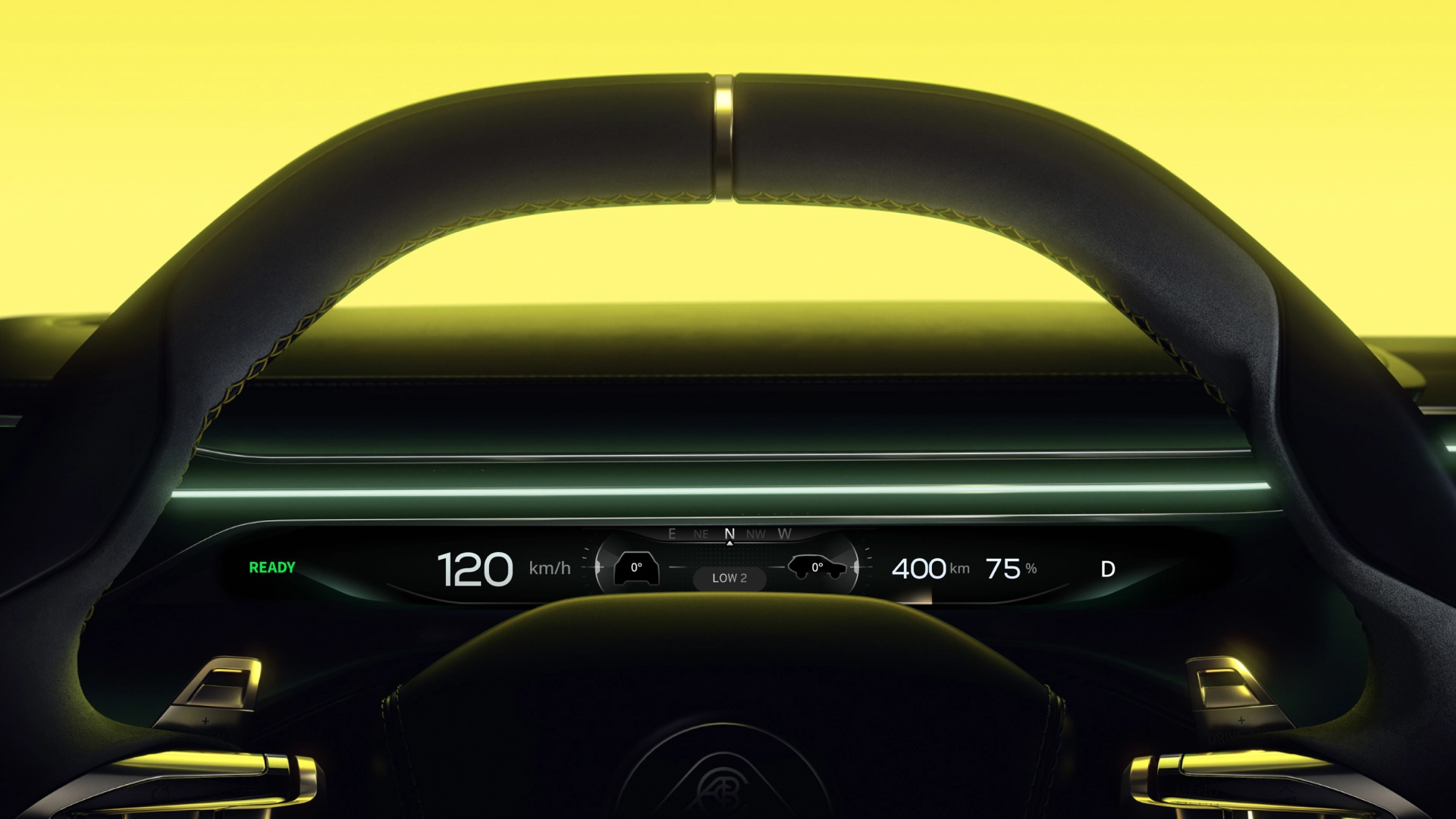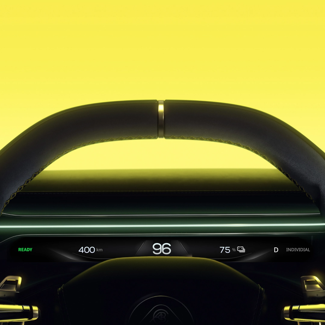 A sleek 25mm display replaces the traditional cluster, showing only essential driving information.